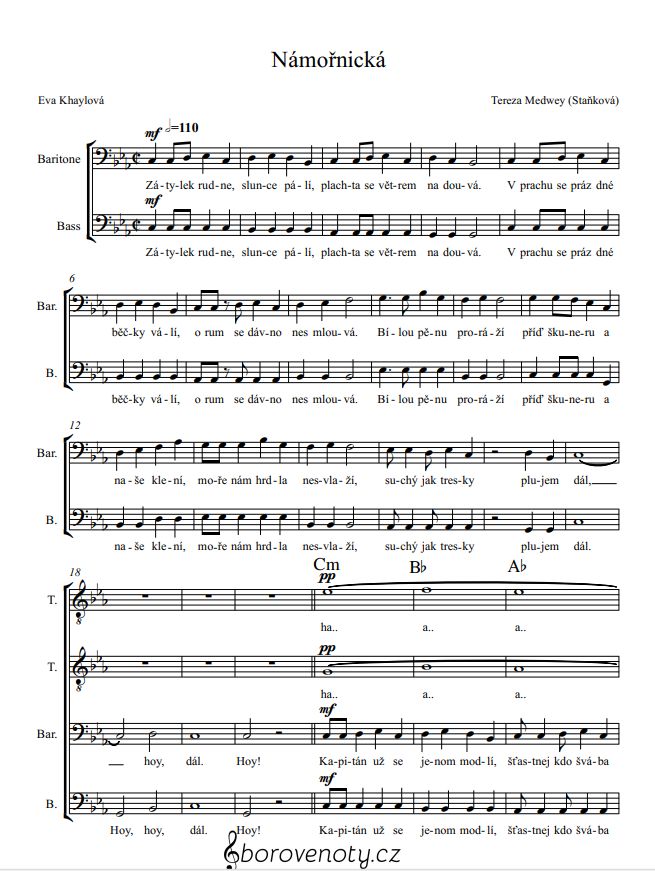 Námořnickou jsem psala původně pro Molydury - jak je na Youtube. Pak jsem udělala úpravu pro mužský sbor Doodles a musím říct, že jim ta písnička moc slušela :-)